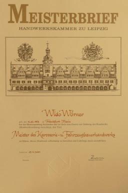 Von 2000 bis 2001 besuchte er in Hanau und Leisnig die Meisterschule und legte im November 2001 die Meisterprüfung zum Karosserie -und Fahrzeugbaumeister ab.