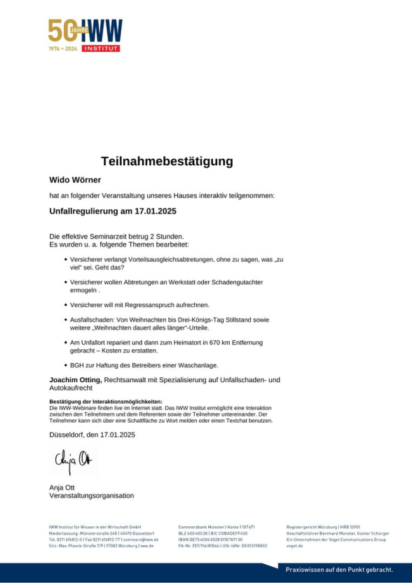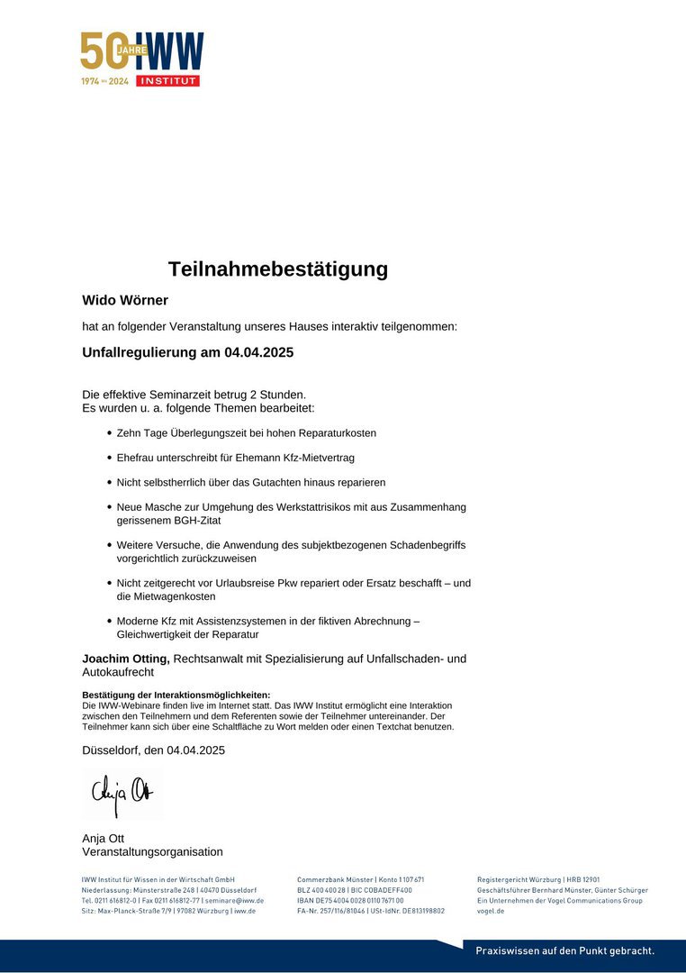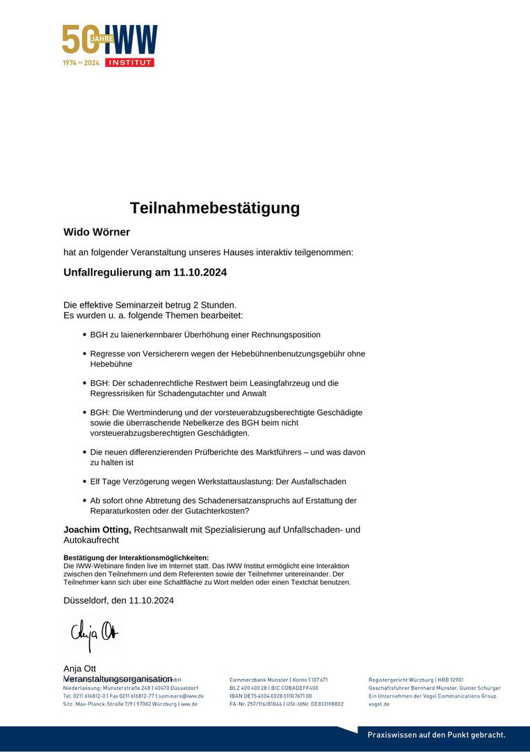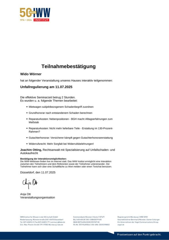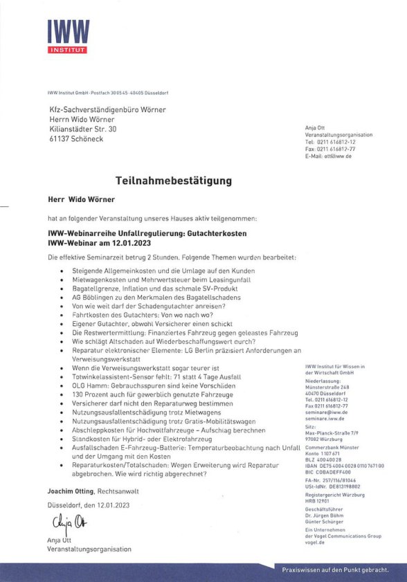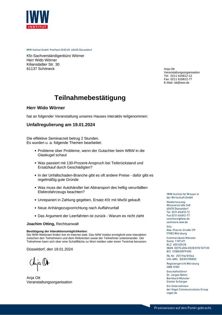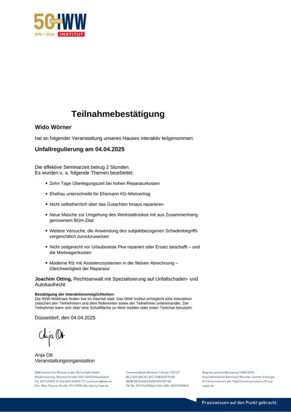 (IQ-Zert - DAkkS akkreditiert) zertifizierter Sachverständiger für Kfz-Schäden und -Bewertung, Zertifikats Nr. S 1647