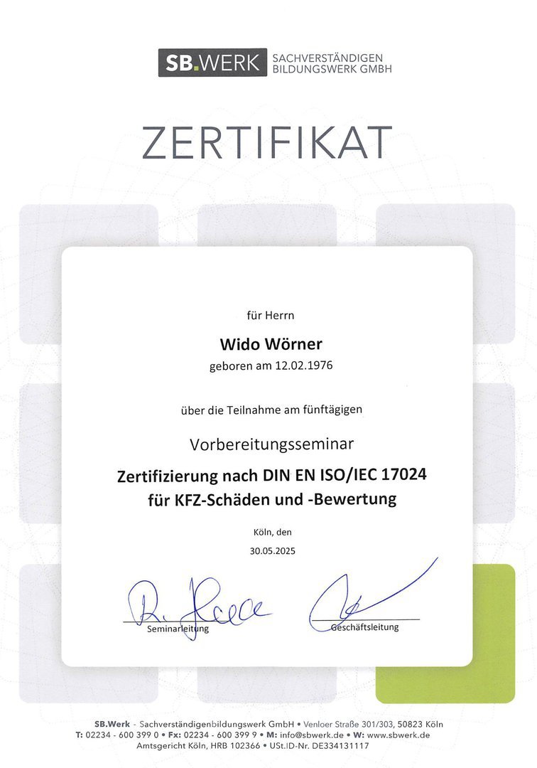 Sachverständiger für Kfz-Schäden und -Bewertung, Ausweisnummer: 2103